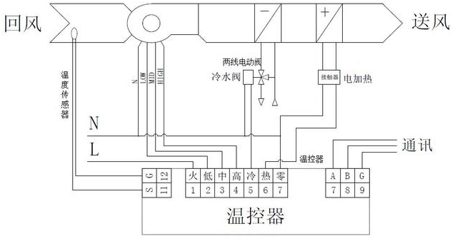 電加熱雙管系統(tǒng)由溫控器、風(fēng)機(jī)盤管、電動閥、電加熱器和接觸器等組成。