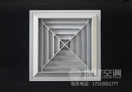 方形散流器先調(diào)挺直,表面光潔,葉片角度為固定式,葉片采用夾角片沖壓連接,整個(gè)葉片與邊框采用分離式結(jié)構(gòu),以方便安裝與調(diào)節(jié)。設(shè)計(jì)時(shí)可根據(jù)房間造型不同,選用不同出風(fēng)方向的散流器,可與調(diào)節(jié)閥配套使用。方形散流器有四種氣流吹出形式,分別為一面吹(A1SO)、二面吹(A2SO)、三面吹(A3SO)、四面吹(A4SO)。鋁合金表面經(jīng)陽極氧化處理,也可根據(jù)用戶要求進(jìn)行靜電噴塑處理。