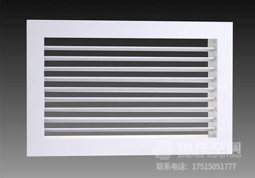 通常安裝在管道或側(cè)壁上,作為側(cè)供氣出口。雙層百葉風(fēng)口有兩層可調(diào)角度的活動葉片,短葉片用于調(diào)節(jié)送風(fēng)氣流的擴散角度,也用于改變氣流的方向。但是,調(diào)節(jié)長葉片會使送風(fēng)氣流附著在天花板上或以一定角度向下傾斜(當(dāng)送風(fēng)時)。雙層百葉風(fēng)口的外刀片或單層百葉風(fēng)口的刀片可以平行于長邊或短邊,可以根據(jù)客戶的要求選擇。