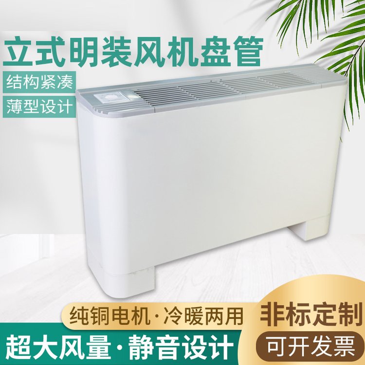 立式明裝風(fēng)機(jī)盤具有管效率高,能量足,風(fēng)量大,噪音低,安全可靠,壽命長(zhǎng)的優(yōu)點(diǎn),是明裝風(fēng)機(jī)盤管。風(fēng)量大,噪音低