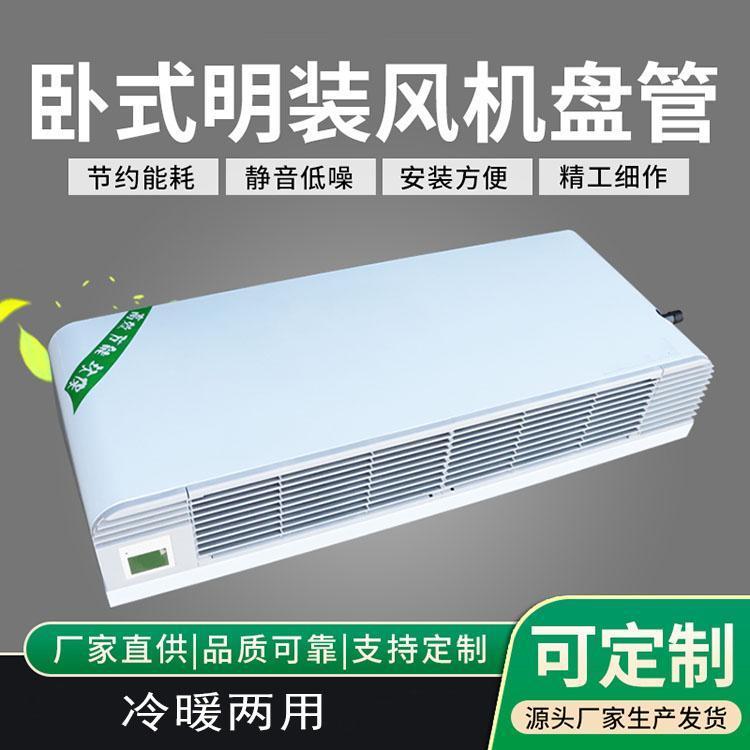 臥式明裝風機盤管機組主要由風機、熱交換器(盤管)、凝水盤、殼體及控制器組成,它適用于集中式空調系統。設計先進、品種齊全、性能優(yōu)越,用途廣泛,通常用于要求噪聲小,溫度調節(jié)靈活的各種賓館、公寓、飯店、醫(yī)院、商業(yè)大樓等。